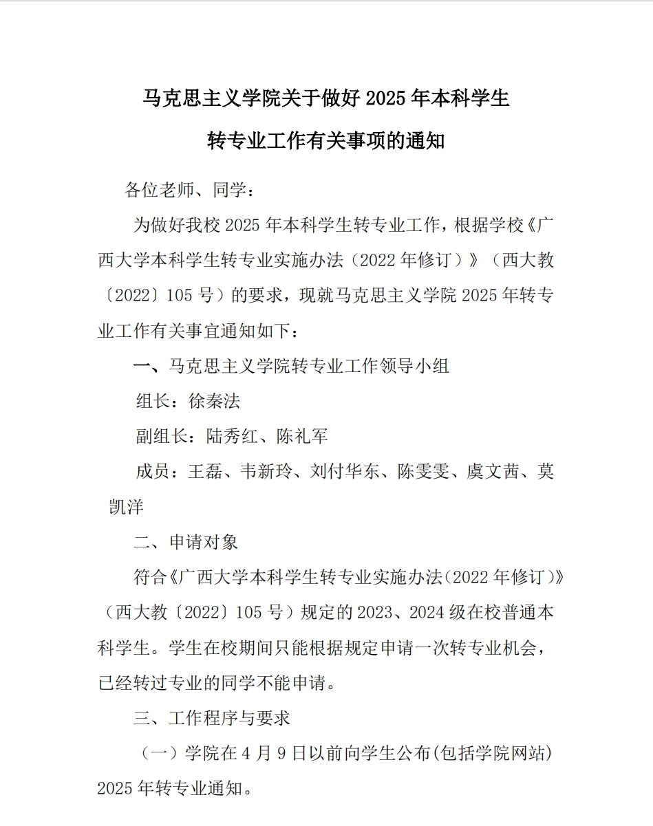 马克思主义公司关于做好2025年本科员工 转专业工作有关事项的通知