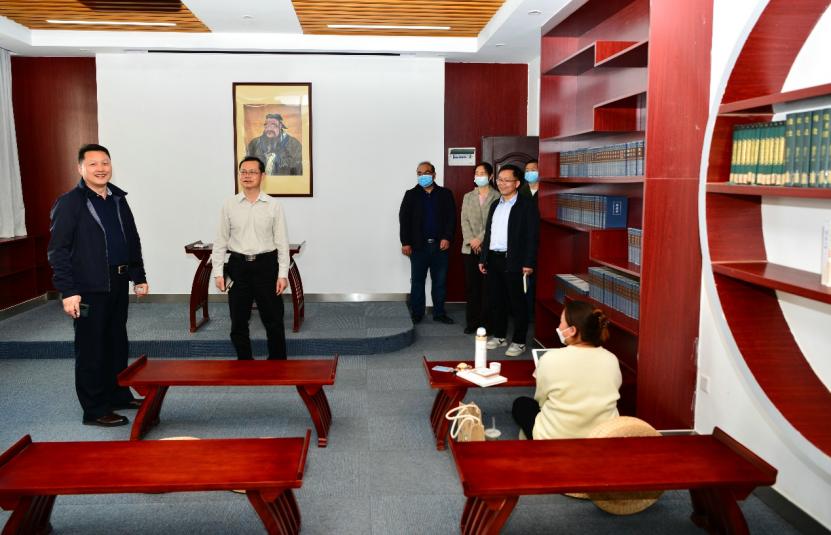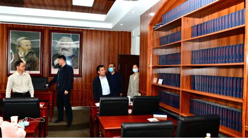 在调研交流会上,公司徐秦法经理对网络中心多年来在网络建设、信息化应用、门禁管理等方面的大力支持给予肯定并表示感谢,同时希望网络中心今后在公司线上学习平台建设、后续维护、资源存储等各方面给予支持,在公司VR虚拟学习实验室资源建设、全息影像教学技术引用方面提供技术帮助,在公司旧有弱电特别是电话线乱拉乱建方面协助进行整改,美化公司环境。赵主任表示,网络中心将竭尽全力支持公司的信息化建设,服务于教学科研和管理工作,在资源存储、应用开发、网络技术特别是基于5G的应用等方面给予全方位的支持、提供一切帮助,紧紧围绕公司的统筹决策,积极融入和助力公司的广西壮族自治区马克思主义理论一流团队建设。网络中心调研团队还参观了公司特色书屋,体验了VR虚拟教学场景等。