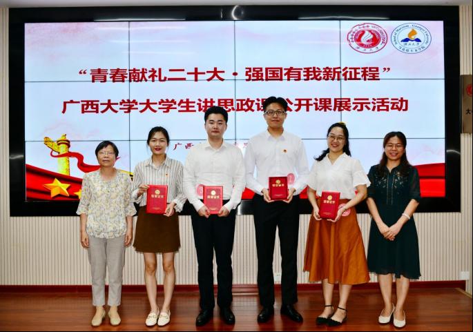 经由现场评委老师打分评选,授课题目为《全民族抗战中的青春力量》等3个团队荣获一等奖;《继承优良传统 弘扬中国精神》等4个团队获二等奖;《青春向党正当时 砥砺奋进新时代》等5个团队获得三等奖。随后,评委老师和嘉宾为获奖团队颁奖,祝贺获奖参赛团队取得优异成绩!