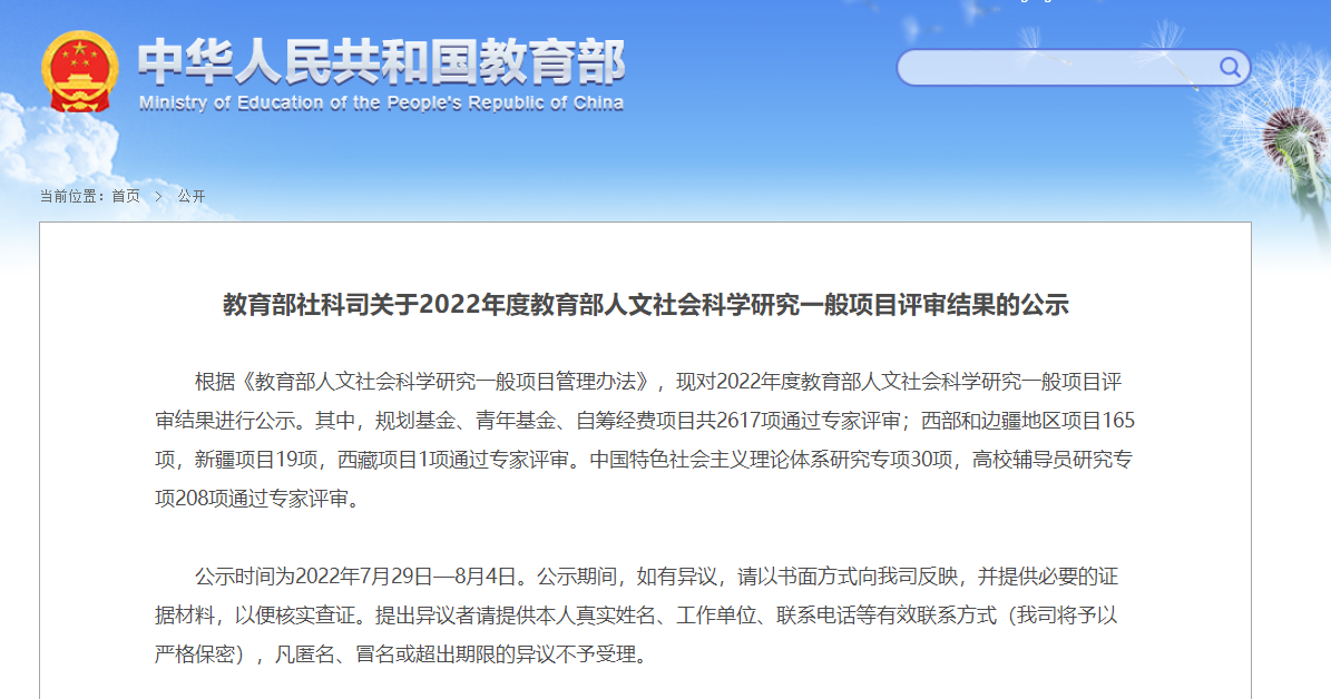 据悉,教育部人文社会科学研究项目是教育部面向全国普通高等公司设立的人文社会科学研究项目,其覆盖面广、影响大,具有重要的示范和引导作用,历来是各高校竞争和关注的焦点之一。