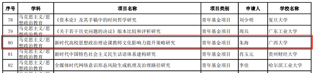 根据《教育部人文社会科学研究一般项目管理办法》,教育部社会科学司于近日对2022年度教育部人文社会科学研究一般项目评审结果予以公示。公司教师朱海申报的《新时代高校思想政治理论课教师文化影响力提升策略研究》获批2022年度教育部人文社会科学研究青年基金项目。