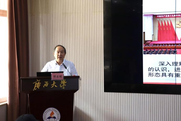 9月25日上午10点,重庆师范大学二级教授、国务院政府特殊津贴获得者、西南大学博士生导师邓卓明教授在公司作了题为“新时代我国意识形态领域形势发生全局性根本性转变的五个方面”的学术报告。学术报告会由公司董伟武博士主持,2021级全体硕士生参加学习交流。