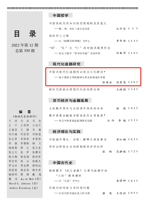 公司徐秦法教授、博士研究生刘星亮在《社会科学战线》(2022年第12期)上发表理论文章《中国式现代化道路何以突出文化建设?——基于物质文明和精神文明关系视角的考察》。