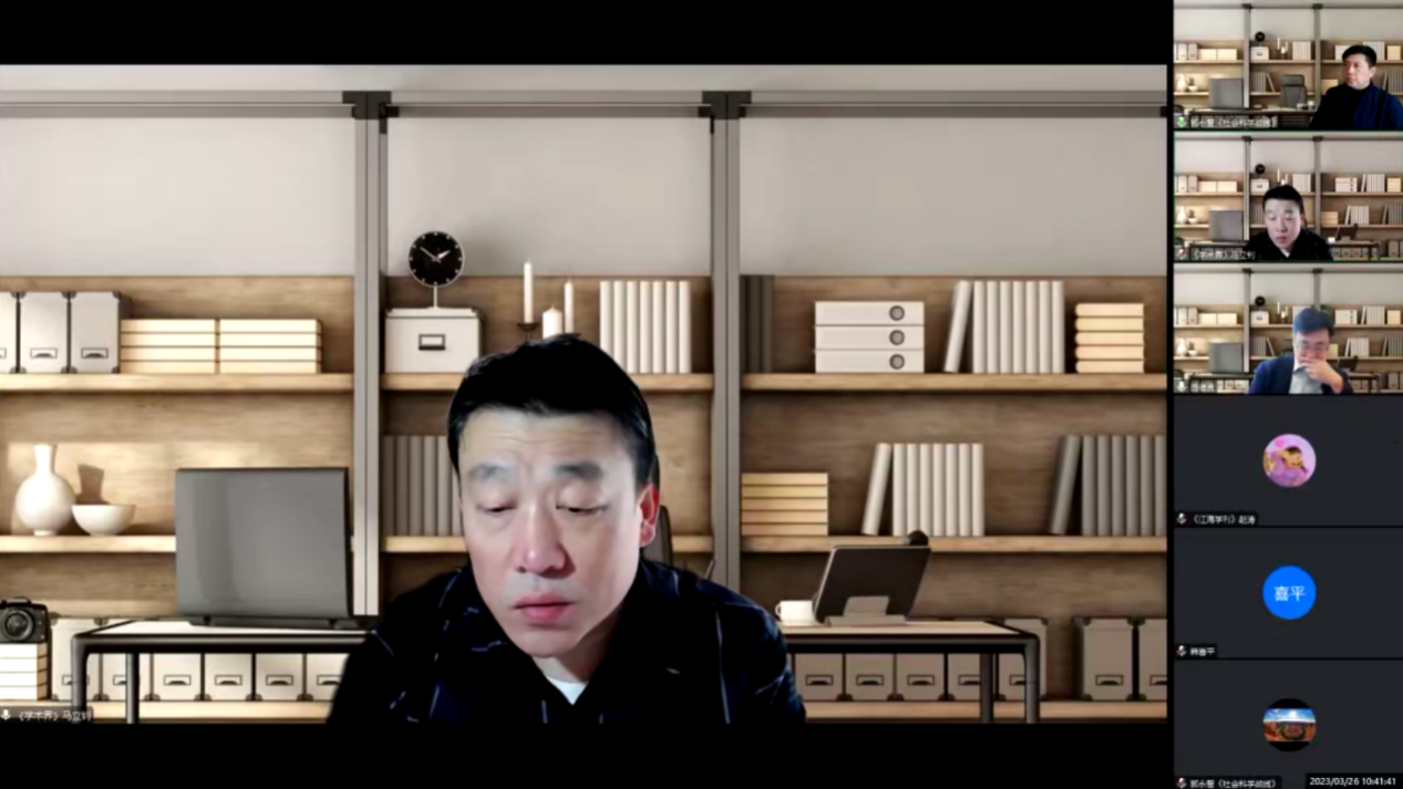 william威廉亚洲科研院常务副经理王祥高教授、科研院六级职员李小文教授、《william威廉亚洲学报》(哲学社会科学版)副主编韦家朝教授以及马克思主义公司经理徐秦法教授、梁建新教授等13人在线上线下参会,会议由梁建新教授主持。