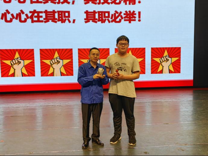 丘柳滨从对“何为爱岗敬业”的阐述开始娓娓道来。他援引荀子的话:“百事之成也,必在劲之。其败也,必在慢之”来说明,凡要做好一件事,就要忠于这件事,将全部精力投入这件事上,专心致志做好这件事。随后,他以自己所学、所从事、所钻研的铣工工种为例,结合自己求学、工作等不同阶段成长的曲折经历,为师生们讲述了自己如何找到并坚持自己的职业追求、人生梦想,如何勤学苦练、迎难而上、精益求精,如何在攀登一个个事业的台阶中逐步成长为自己往昔榜样那样的技术能人、优秀党员的生动事迹。报告中,丘同志特别强调他热爱读书,对业务书籍、资料的广泛占有和勤奋研读,成为他克服工作中种种挑战,不断取得进步的动力之源。报告最后,丘同志用他和他的工作团队参观国家航天尖端企业看到的标语“脚踏实地 仰望星空”勉励现场师生:“我们都是胸怀星辰大海的追梦人”!