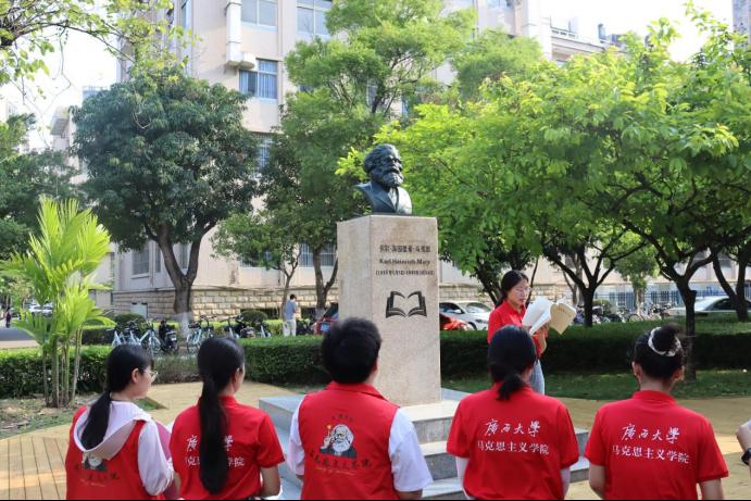 在马克思诞辰205周年之际,马院团员青年积极弘扬马克思主义优良学风,通过阅读名著纪念伟大的思想家马克思,深刻感悟把握习近平新时代中国特色社会主义思想,我们进一步明确了新时代青年应深入学思践悟马克思主义的“行”、中国共产党的“能”、中国特色社会主义的“好”,自觉用中国特色社会主义理论体系武装头脑、指导实践,争做与时代同频共振的奋斗青年。
