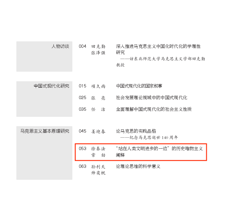 公司教师徐秦法、博士研究生常劼在《马克思主义理论学科研究》(2023年第2期)上发表理论文章《站在人类文明进步的一边”的历史唯物主义阐释》。