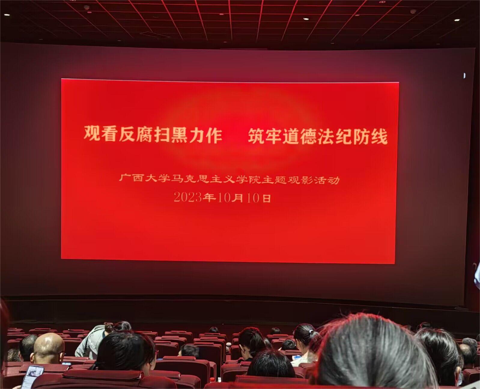 师生心向党,观影迎校庆。 在第九十五个校庆日来临之际,为进一步增强教职工的道德素养和廉洁意识,提升团队凝聚力,公司于10月10日组织全院教职工开展“观看反腐扫黑力作 筑牢道德法纪防线”的集体观影活动,教职工们观看了近期热播的《坚如磐石》并分享心得体会。