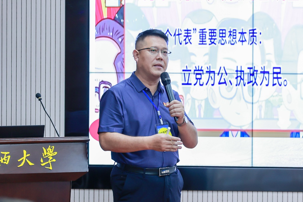 比赛结束后,邓卓明教授代表评委会作了精彩点评。他表示,各位参赛选手准备充分,在讲授中各显风采、各有精彩,表现出深厚的理论功底和精湛的授课技巧。结合思想政治理论课高质量发展的要求,邓卓明教授提出了以下五点建议:一是要坚持把习近平新时代中国特色社会主义思想作为教学的中心内容和首要任务;二是要注意突出讲授的重难点,并在讲授时间和授课结构上予以体现;三是要注意教学环节的完整性与教学内容的逻辑性、层次性,一定要全面把握与深入理解授课内容;四是要注意教学语言的严谨性与准确性,一定要杜绝带有误导和歧义的内容;五是要加强对教学对象的分析与关注,把准育人导向,不断提高授课的生动性、感染力和吸引力。