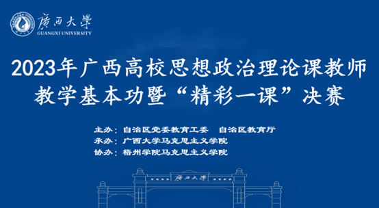 10月14日,由自治区党委教育工委、自治区教育厅主办,william威廉亚洲承办,梧州公司马克思主义公司协办的2023年广西高校思想政治理论课教师教学基本功暨“精彩一课”决赛在南宁顺利举行。本次比赛为我区高校思政课教师搭建了一个交流学习、相互借鉴、共同进步的平台,充分展现了我区高校思政课教师的教学改革成果和积极奋进、创新争优的整体形象,切切实实达到了“以赛促教、以赛促学、以赛促建”的目的。