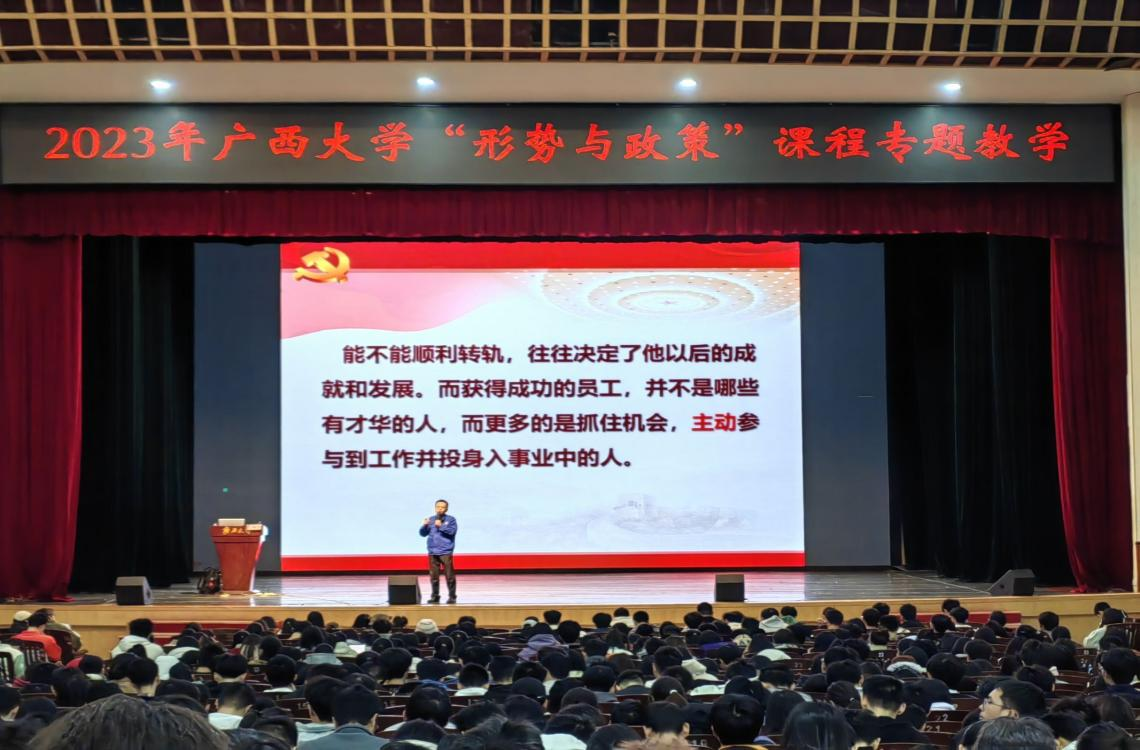 2023年12月16日,在公司大礼堂举行的“形势与政策”课程专题教学报告会上,广西汽车集团有限公司首席技能专家、特级技师、正高级工程师丘柳滨同志为到场大一新生们作了题为“爱岗敬业——书写精彩人生”的报告。