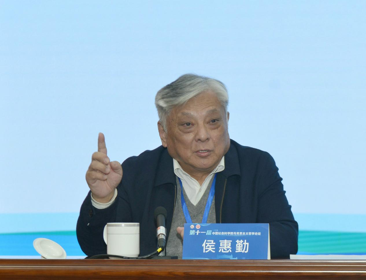 中国社会科公司马克思主义哲学论坛主席、国家文化安全与意识形态建设研究中心主任,中国历史唯物主义学会会长侯惠勤作大会主旨报告。侯惠勤教授指出,首先,马克思主义哲学创新的特点是守正创新,是在应用中创新,包括两个方面,一是在应用马克思主义世界观方法论解释和解决现实问题中提出新判断,二是在新历史条件下对马克思主义世界观方法论提出新认识、新阐发。其次,马克思主义哲学创新的路径是一脉相承和与时俱进的统一,马克思主义是辩证统一的整体,既包括原创形态,也包括随着时代发展而不断发展的创新形态。再次,马克思主义哲学创新的内容是马克思主义世界观方法论的坚持运用,创新不是颠覆式的,不是对马克思主义基本范式、基本原则所进行的所谓创新,不能抹杀马克思主义唯物主义立场和原则。侯惠勤教授认为,马克思主义世界观方法论之所以是科学信仰体系,就在于它把世界的终极存在问题和人类生存的终极关怀问题这些所谓的“形而上”纳入了科学的视野。他强调,习近平马克思主义哲学世界观与方法论的创新表现在把人民至上提升为普遍的自觉的历史观原则;指明了超越片面的物化的个人主体,建设全面发展的联合起来的自由人共同体方向。中国式现代化是马克思世界观方法论的坚持运用,是一种自觉的现代化,是中国共产党领导的、有先进理论指导的自觉的现代化,充分体现了历史自信和历史主动。