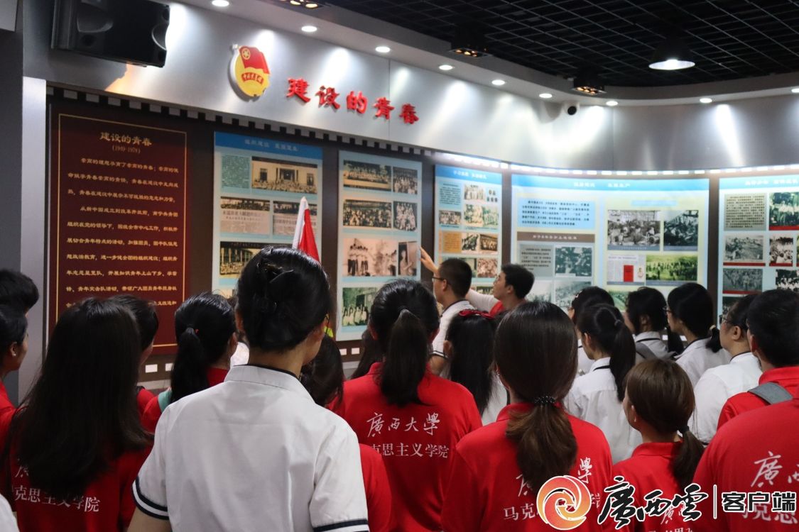 走进有着近百年历史的南宁市共青团纪念馆,厚重的历史气息扑面而来,一幅幅油画、一件件展品,讲述着南宁市共青团坚定不移跟党走的光辉历史。在3D展台前,团员们纷纷争相参观,屏幕上滚动播放着不同时期使用过的团旗、团徽影像和一段段珍贵的团史影像,生动立体的效果让在场的同学们禁不住想伸手一探究竟。“运用数字技术让文物‘动起来’,历史也变得更生动了。”马克思主义公司研究生罗玲说。