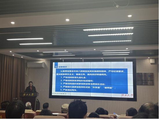 随后,吴达慧对毕业生就业、员工心理普测、防范网络诈骗、“挑战杯”竞赛指导等工作进行了布置,并针对违规饮酒十种情形开展警示教育,要求全体教职工认真贯彻落实中央八项规定及其实施细则精神,严守纪律要求,坚决抵制享乐主义、奢靡之风,崇尚良好师德师风。