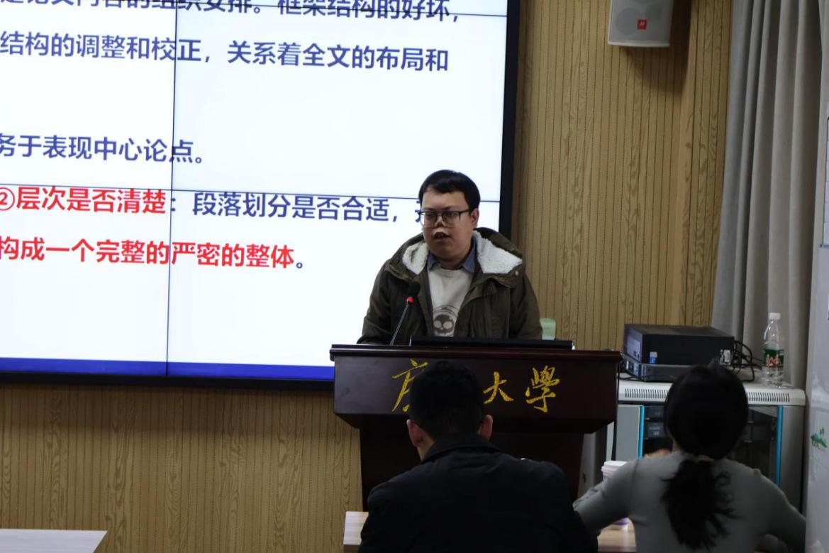 梁轩铭老师以“论文修改”为主题,分别从改框架结构、改引用材料、改语言和标点及学术论文投稿五个方面分别作了讲解。梁老师强调:一要重点检查论文中心是否突出、层次是否清楚、全文是否构成一个完整严密的整体,做到论文不跑题、不混乱、不冗缺;二要在检查引用材料时把握必要、真实、合适原则;三要做到语言表达清楚而简练、表达准确、具有可读性。此外,梁轩铭老师还为各位同学介绍了常见的查重网站和期刊评价网站。