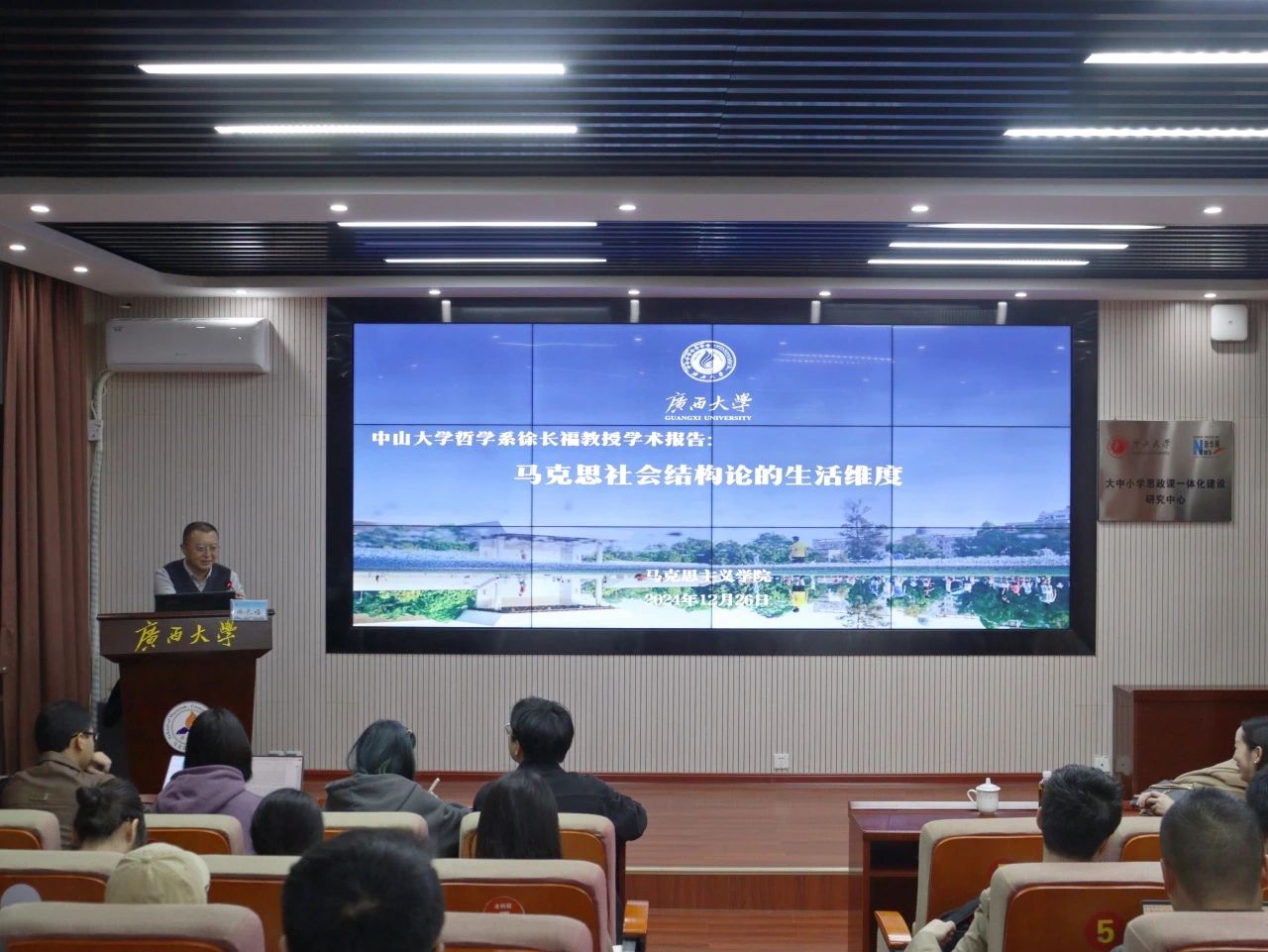 12月26日,中山大学哲学系教授、博士生导师徐长福应邀来公司作了题为《马克思社会结构论的生活维度》的学术讲座。本次讲座由公司黄璇教授主持,公司师生代表近百人到场聆听。