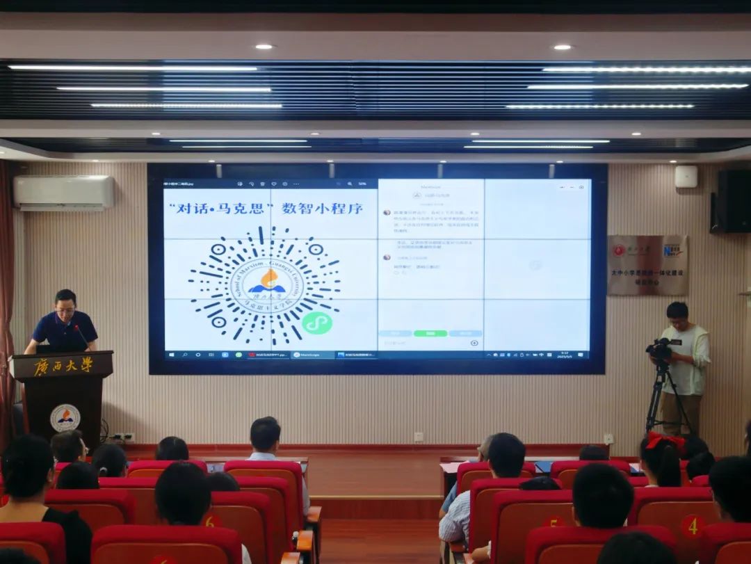 在百余名大中小员工、思政课教师与中小学董事长的共同见证下,领导嘉宾们按下启动按钮,共同发布“对话·马克思”数智小程序。