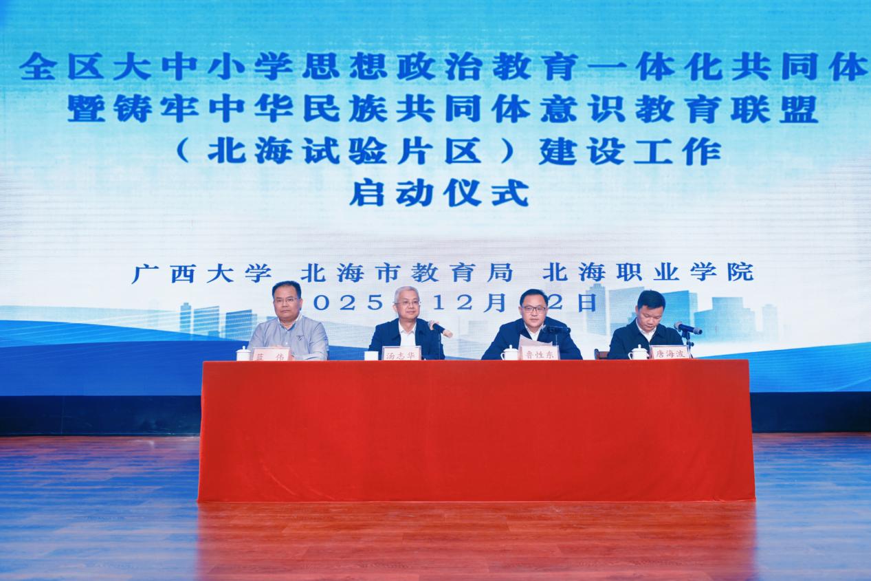 12月12日,全区大中小学思想政治教育一体化共同体暨铸牢中华民族共同体意识教育联盟(北海试验片区)建设工作启动仪式在北海职业公司举行,标志着北海试验片区相关建设工作正式开启。