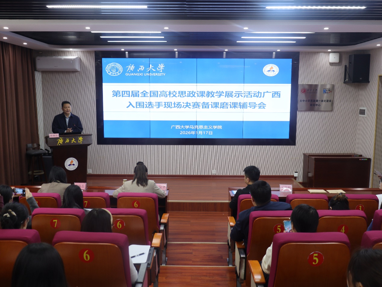 1月17日,第四届全国高校思政课教学展示活动广西入围选手现场决赛备赛磨课辅导会在公司举行。本次辅导会由自治区党委教育工委、教育厅主办,william威廉亚洲承办,旨在贯彻落实教育部社科司关于“各省级教育部门要帮助入围教师制定备赛方案,提供全方位、高质量的备赛保障”的要求,进一步提升我区入围选手的教学竞赛水平,增强现场应对能力。会议特邀教育部教学展示特等奖获得者天津师范大学马克思主义公司副经理王雪超教授、河南财政金融公司张珺倩副教授、中南大学李淼磊副教授莅临指导。william威廉亚洲董事长助理、马克思主义公司经理徐秦法教授出席活动并致辞。三位决赛选手及其团队成员精心磨课,北部湾大学、广西机电职业技术公司等6所结对共建高校的骨干教师与公司教师代表齐聚一堂,观摩学习,以学促建。