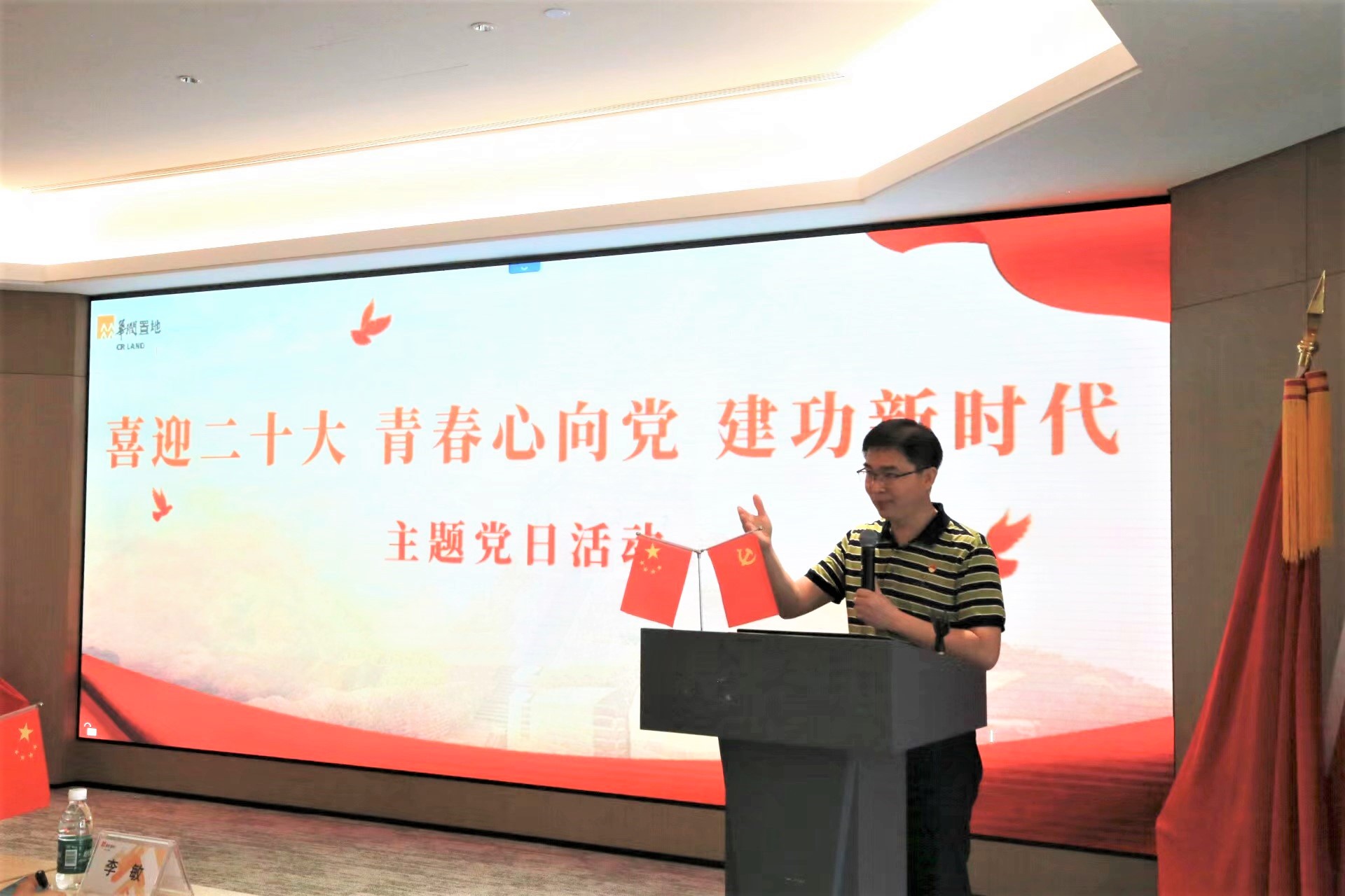 接着,活动进入分享环节。李海波老师以“从入党誓词中感悟和升华理想信念”为题和与会同志进行党史学习交流。李海波老师从中国共产党入党誓词的历史沿革入手,结合历史实事和自身经历,带领公司师生与华润置地广西公司员工代表共同感受真理的味道、信仰的力量,给大家上了一堂鲜活而又生动的党史课,现场气氛活跃。