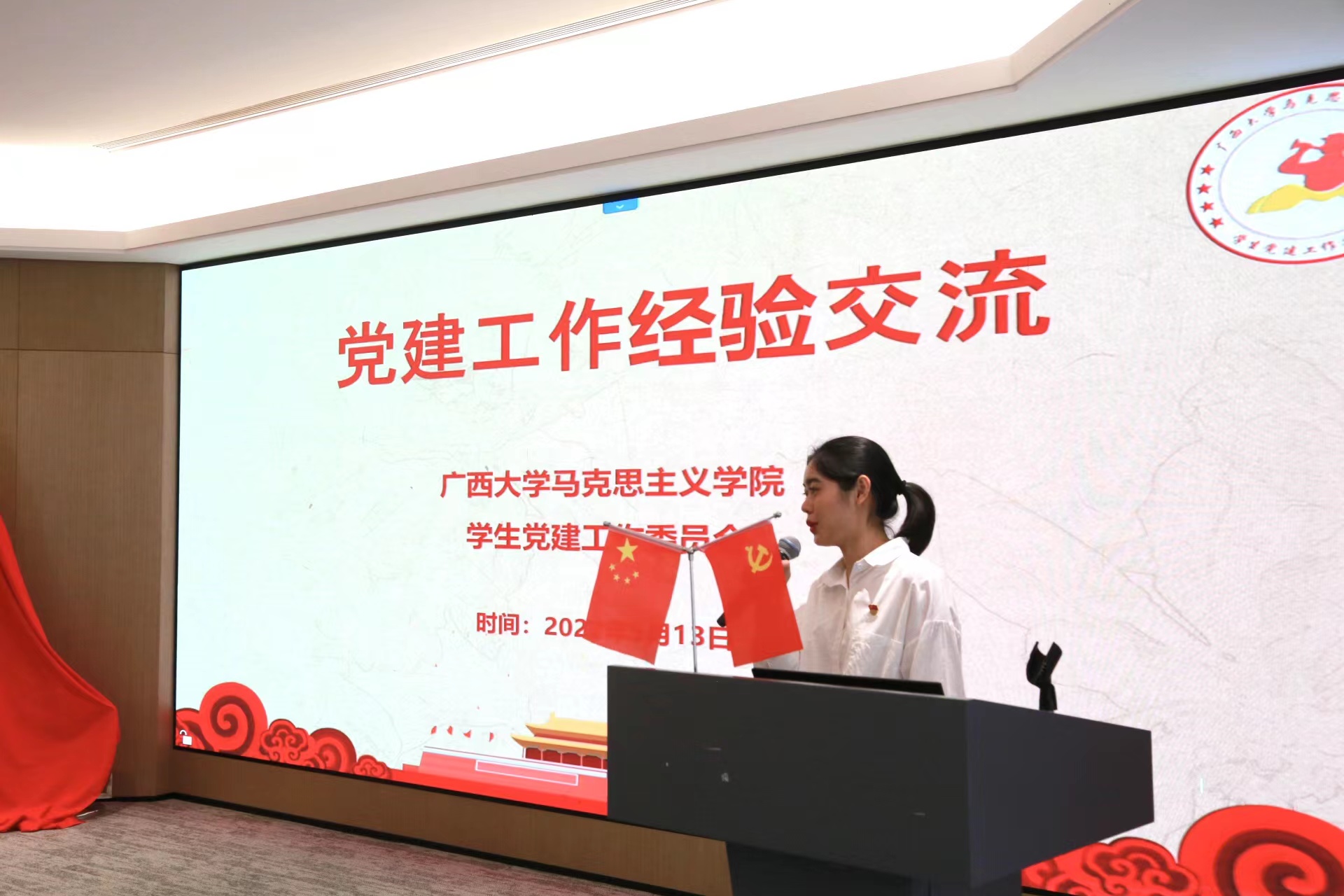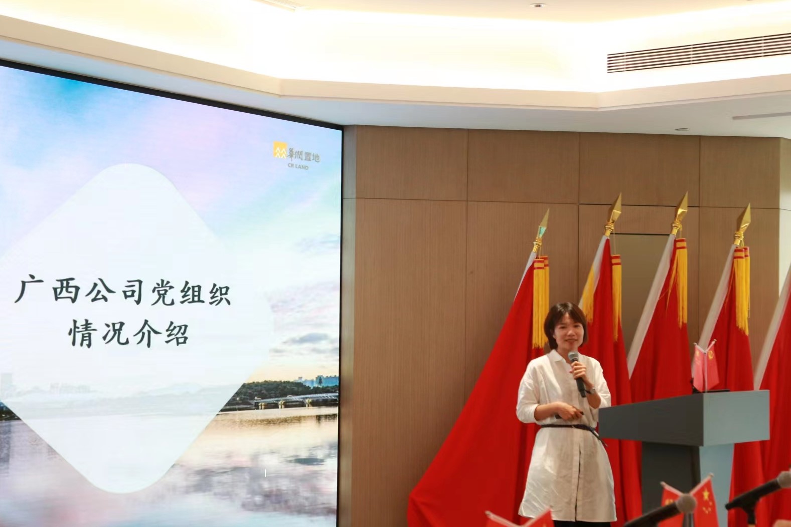 公司唯理社党支部组织委员刘洁、党建会主任李梦也依次分享了公司党建工作的特色、经验和成果,华润置地广西公司团支部书记李敏向与会师生介绍了华润的发展历史、党建文化和业务板块及在建项目。