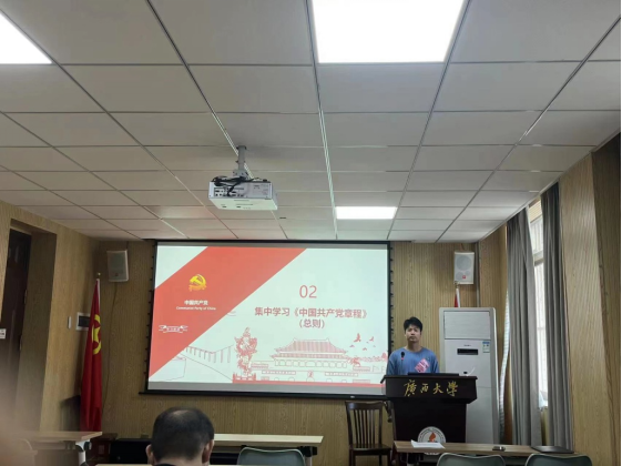 接着,赵彦雪带领支部党员共同学习了新修订的《中国共产党章程》总则部分,研究生第三党支部党员毛燕君同志、思政本科党支部党员姚凯瑞同志分享了学习体会,他们表示将进一步按照新党章要求,坚持党员标准,严格要求自己,不断提高政治觉悟。