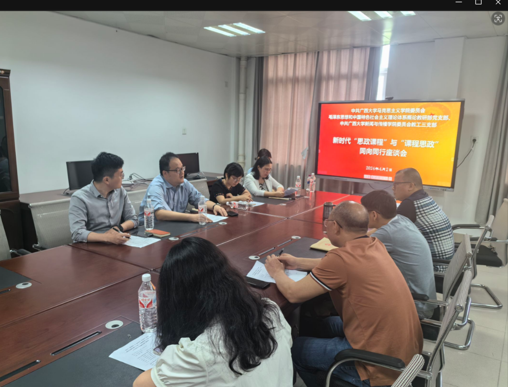 随后马院及新闻公司老师们就“新时代‘思政课程’与‘课程思政’同向同行”开展了深刻的交流座谈。