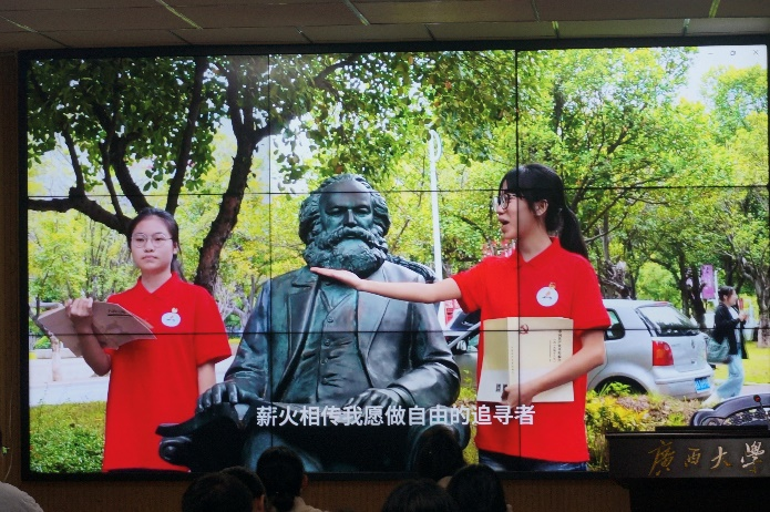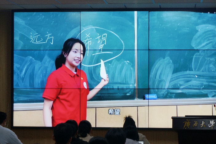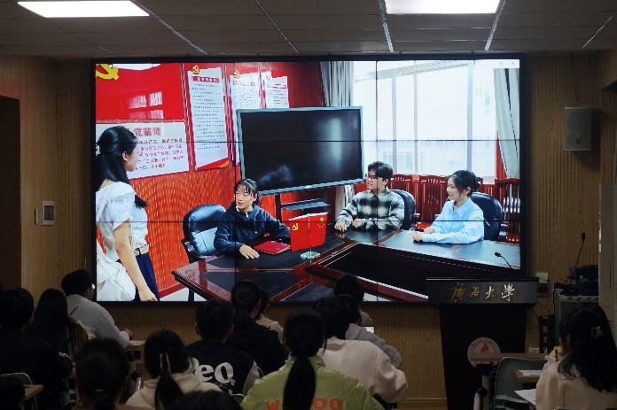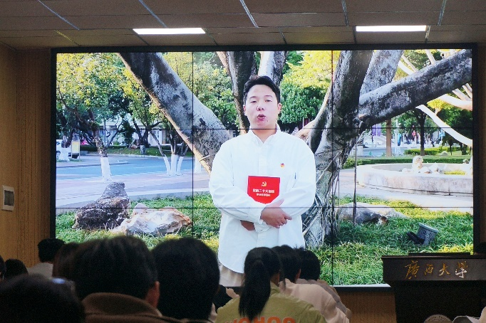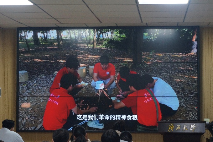 随后,入党积极分子培训班各小组依次派出学员代表进行创意介绍与视频展示。在各小组的视频中,有以经典诵读的形式展现党的创新理论的强大力量,以人物演绎的形式展现黄文秀、杨宁等时代模范人物的先进事迹,也有通过跨时空的场景演绎展现红军艰苦奋斗、牺牲奉献的革命精神,或将哲学与党的建设相结合展现共产党人追求真理的坚定信念,形式多样,寓意深刻,引人深思。