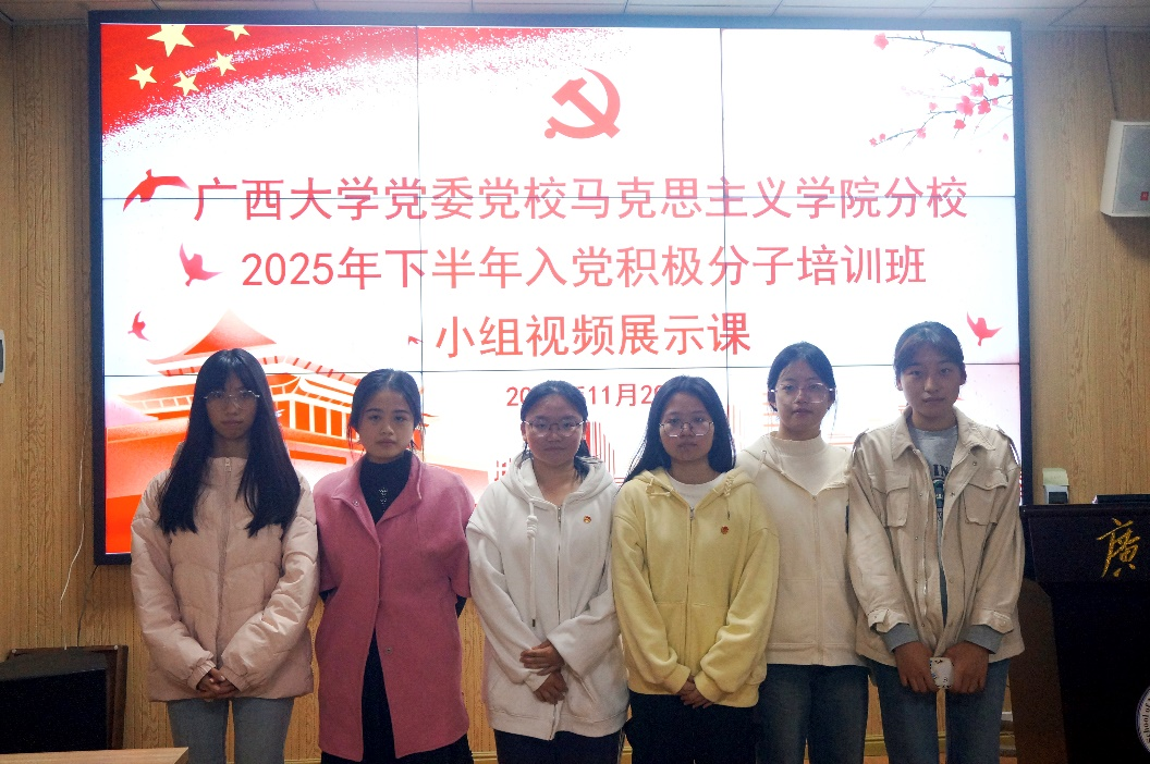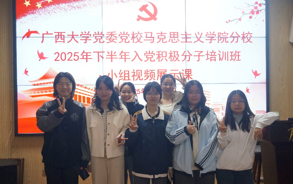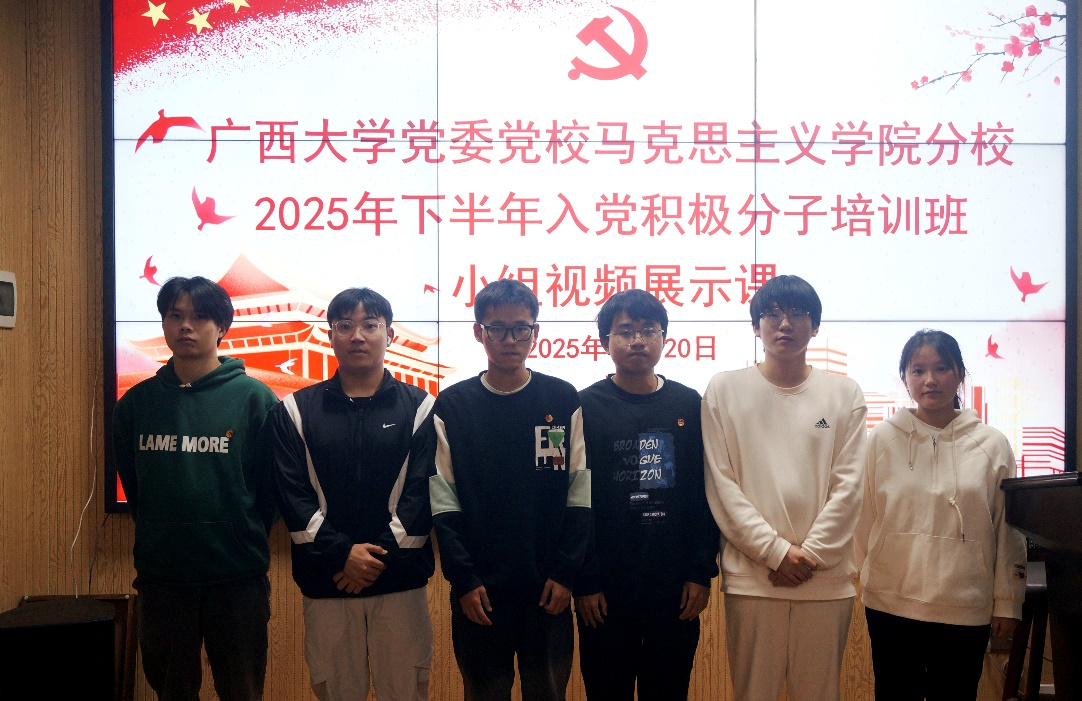 最后,各小组成员依次上台合影留念,此次小组视频展示活动圆满结束。希望入党积极分子培训班全体学员能够以此次活动为契机,持续加强理论学习,不断提高党性修养,将爱党爱国之情转化为实际行动,在学习和生活中发挥模范带头作用,争取早日成为一名光荣的中国共产党党员。