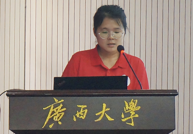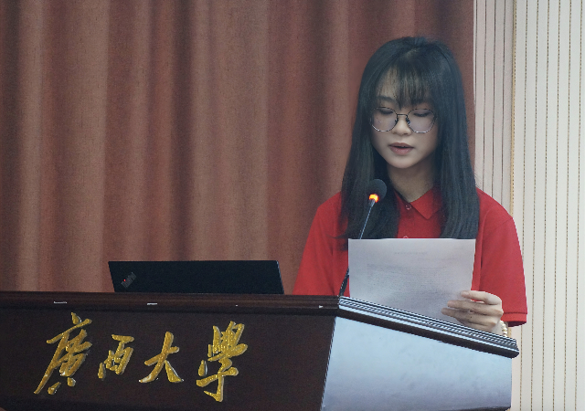 随后,硕士生肖姗姗和本科生黄艾妮作为学员代表先后发言。肖姗姗以“成为发展对象不是终点,而是向更高标准迈进的新起跑线”为誓言,从四个“青年”来讨论如何提升自我:坚定理想信念,做政治立场坚定的青年;锤炼品格修为,做道德品质过硬的青年;脚踏实地奋斗,做能力本领突出的青年;心怀家国,做勇担时代责任的青年。黄艾妮则以自身所学的专业知识为指引,呼吁学员们端正入党动机,坚定理想信念,要将理论思辨与现实关切紧密结合起来,提升辩证思维和战略思维能力,要以饱满的热情、严谨的态度以及扎实的作风投入到紧张而富有意义的学习培训中去。