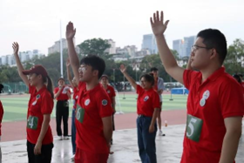 游戏过后,学员们一起高唱《我的祖国》,抒发爱国之情,唱响青春心向党的动人旋律。