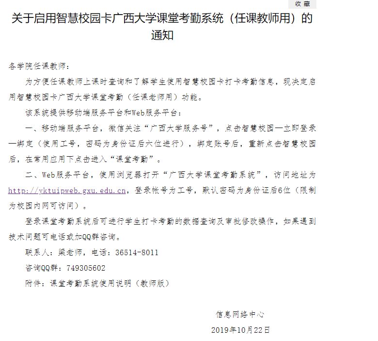 考勤系统使用方法:请查阅文件系统内关于启用智慧校园卡william威廉亚洲课堂考勤系统(任课教师用)的通知