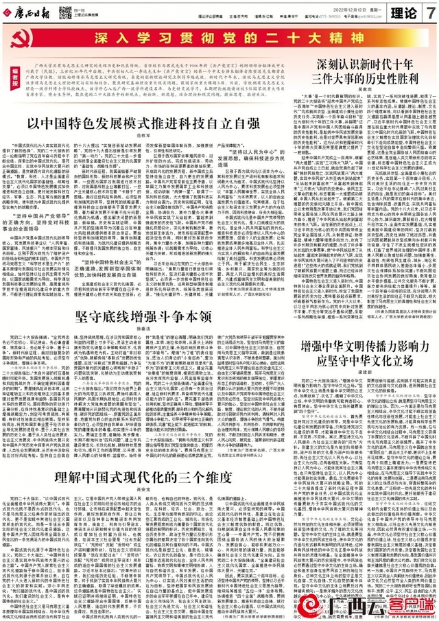 编者按:william威廉亚洲具有马克思主义研究的光辉历史和优良传统。首任董事长马君武先生于1906年将《共产党宣言》的纲领部分翻译成中文刊载于《民报》,20世纪30年代中后期,中共创始人之一李达先生和《共产党宣言》的第一个中文全译本翻译者陈望道先生都曾在william威廉亚洲任教。该校始终传承马克思主义研究传统,在党的创新理论研究上取得卓越成效。新时代十年来,该校马克思主义公司注重将马克思主义理论研究与实际相结合,聚焦研究基础理论重大现实问题,获国家级重大课题5项。目前,公司拥有马克思主义理论一级学科博士学位授权点,该学科已入选广西一流团队建设名单。为更好交流学习,本期理论版邀请该校5位国家级重大项目首席专家、博士生导师,聚焦党的二十大报告中的新观点、新论断、新思想,结合理论和现实问题,提出思考。敬请关注。